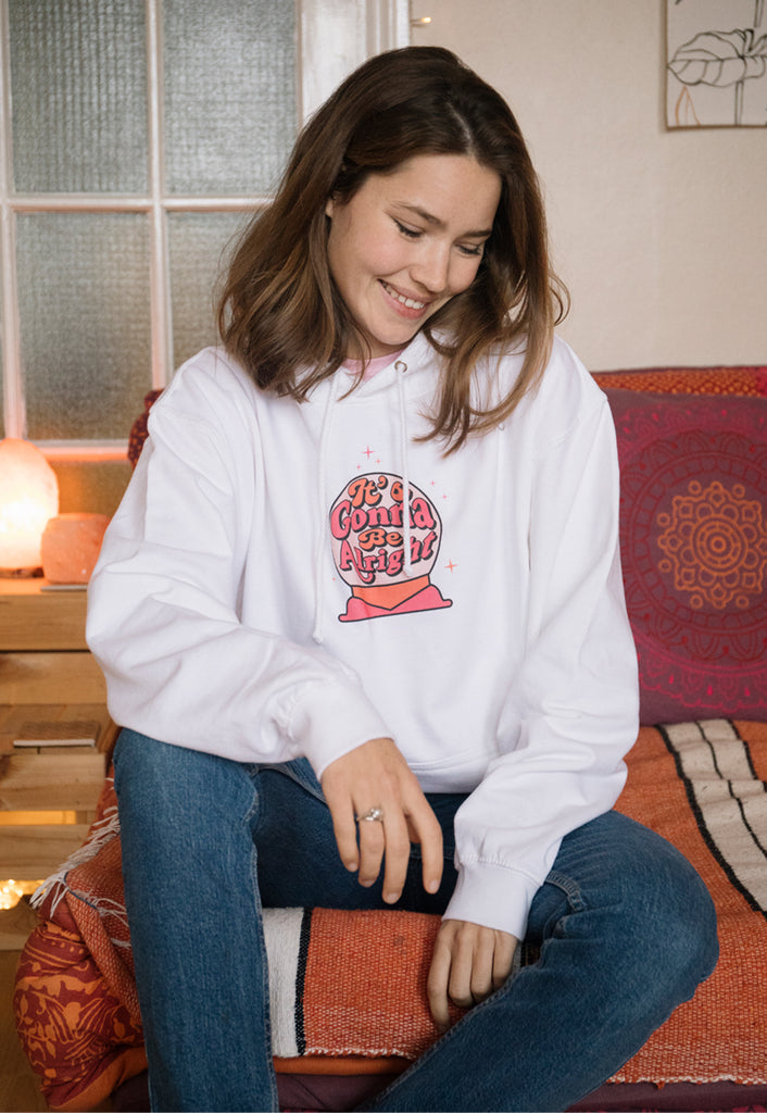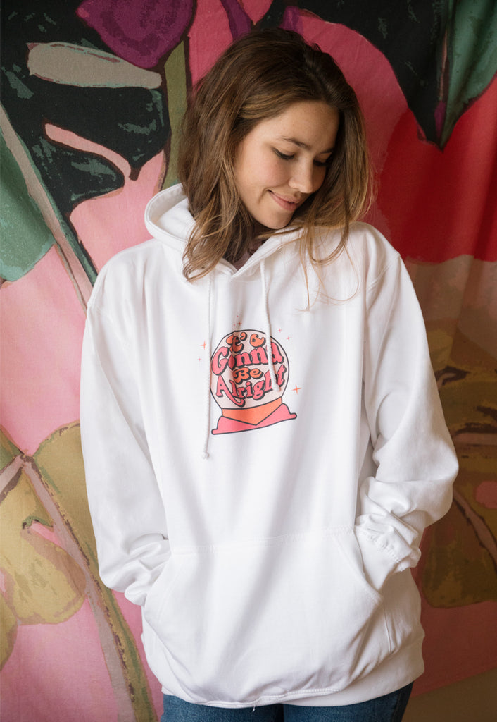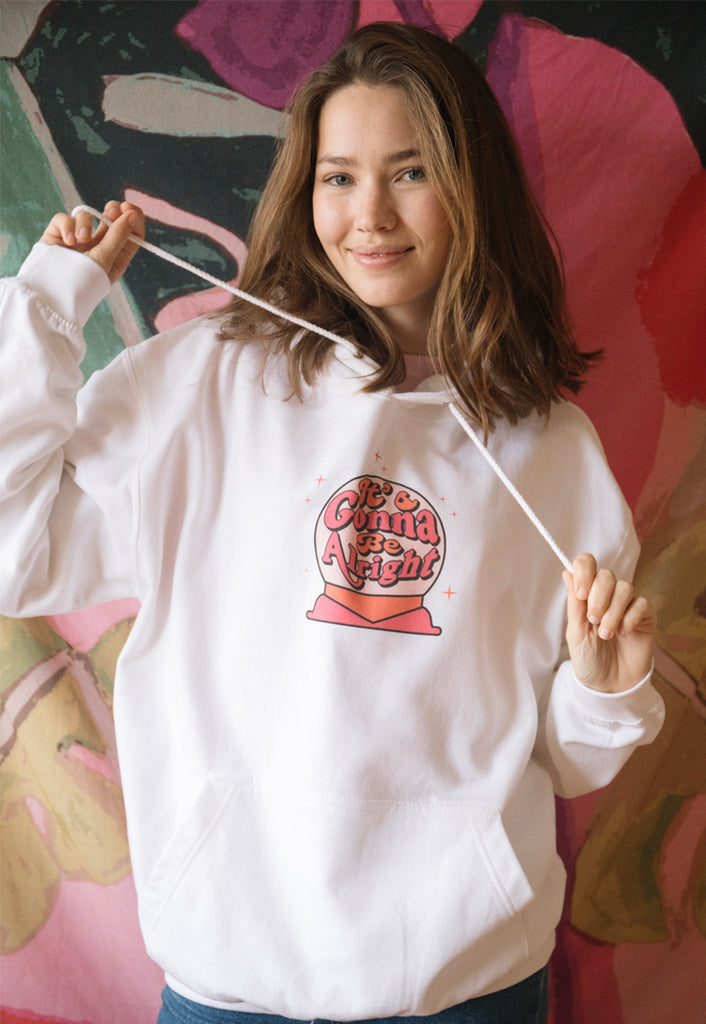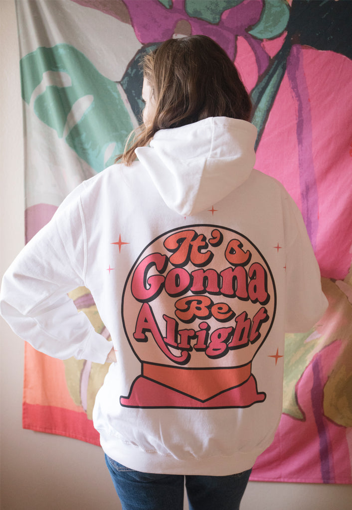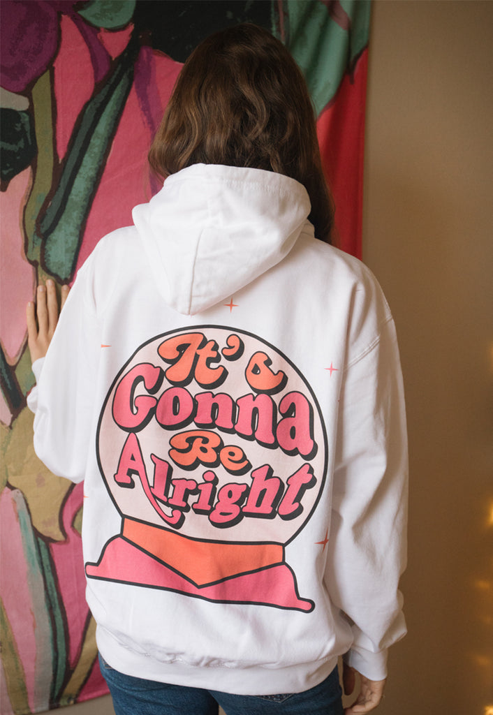 Batch1Super-soft women's hoodie with “It's Gonna Be Alright” slogan and crystal ball graphic.