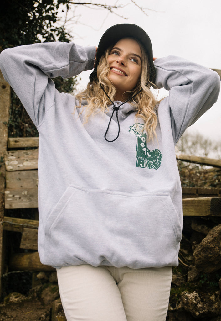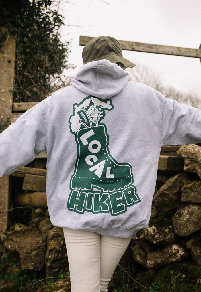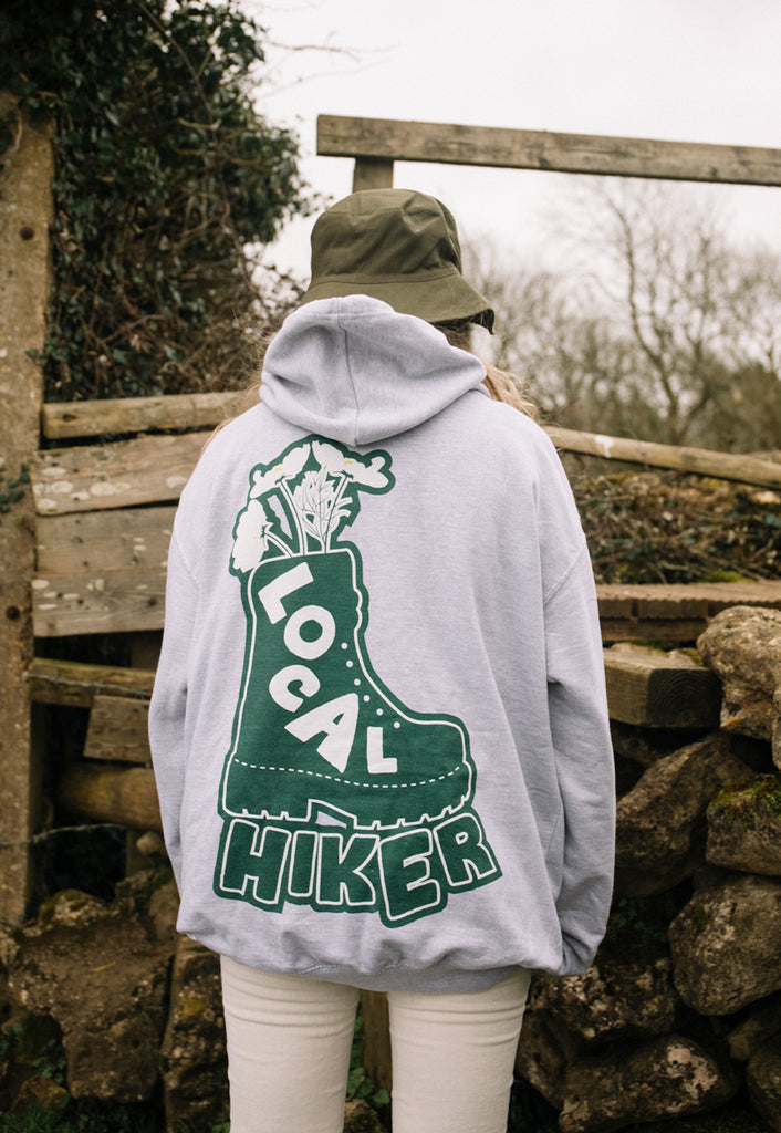 Batch1Super-soft women's hoodie with “Local Hiker” slogan and hiking boot graphic.
