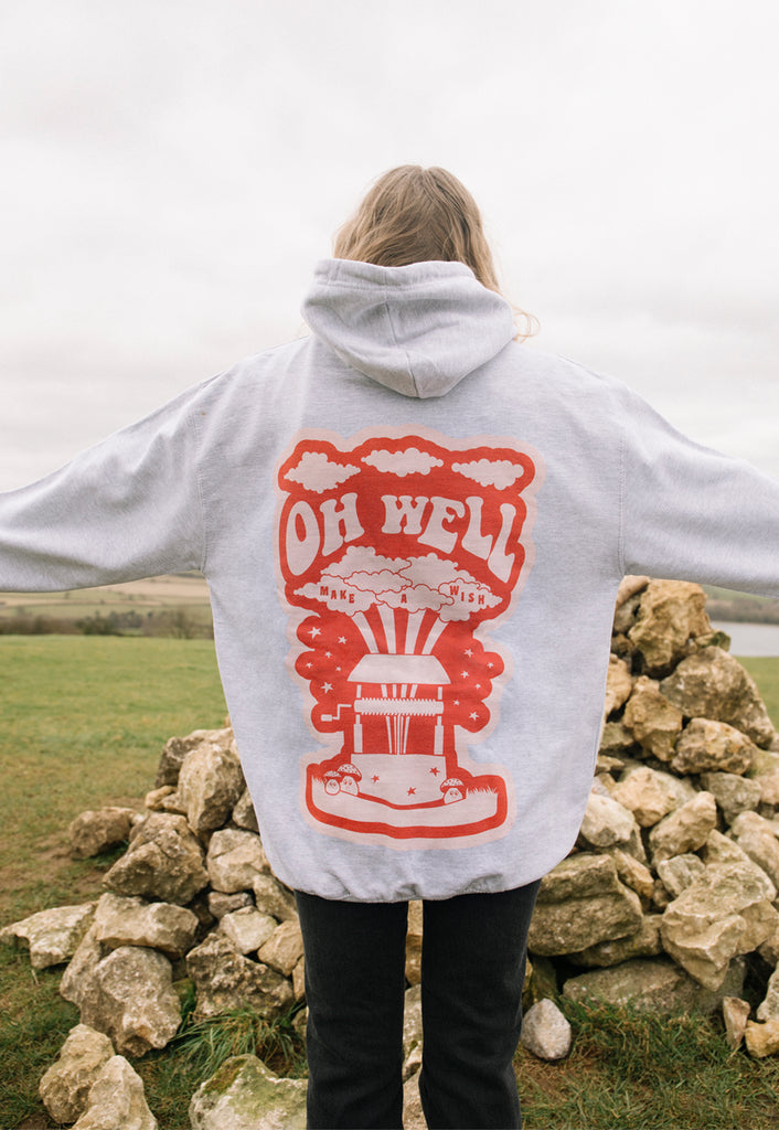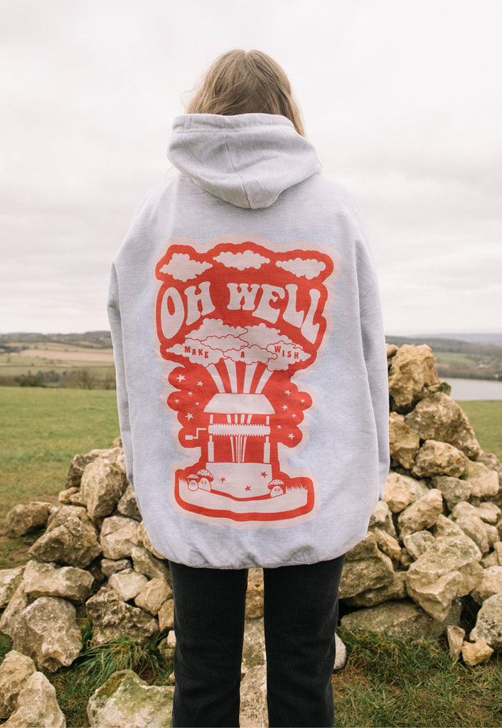 Batch1Super-soft women's hoodie with “Oh Well” slogan and wishing well graphic.